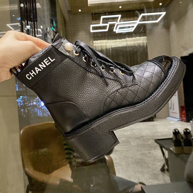 Chanel Plaid Ankle Boots Black Gj399YO-Vj9714Z